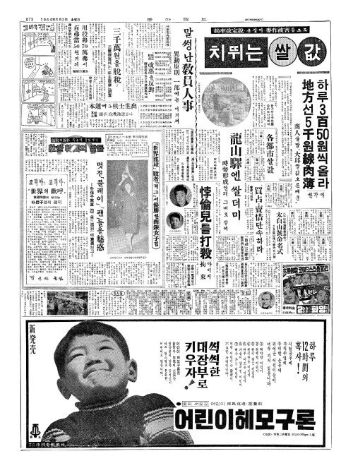 - 쌀값 對策(대책) 서울·大邱(대구)·釜山(부산)에 政府米(정부미) 30萬石放出(만석방출)