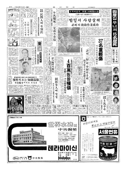 - 四層(사층)집 무너져 15名壓死(명압사)