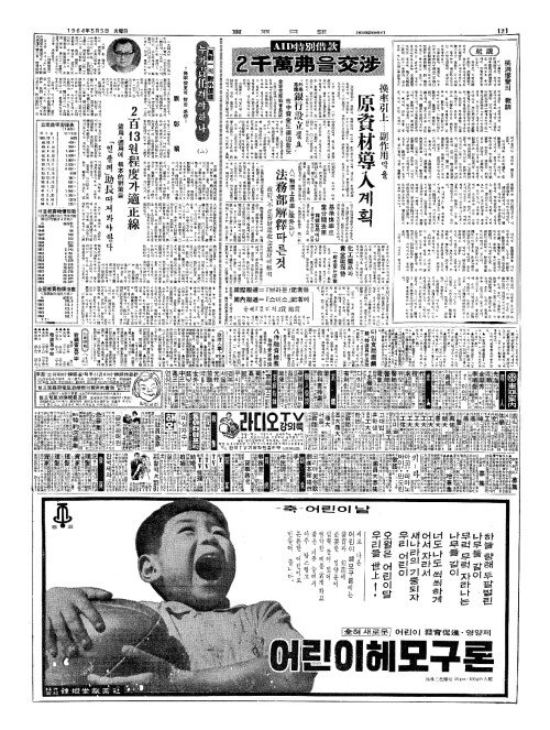 - AID特別借款(특별차관) 2千萬弗(천만불)을交涉(교섭)