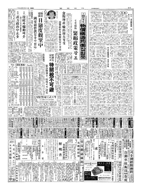 - 經濟安定(경제안정)위해 特關稅不可避(특관세부가피)