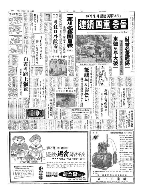 - 40『마일』의 過速(과속) 美軍(미군)『트럭』連鎻四重(련쇄사중)충돌
