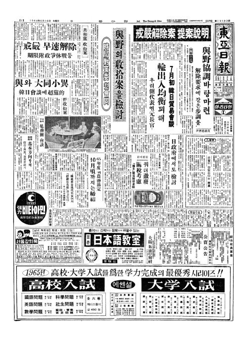- 7月初(월초) 韓日貿易會談(한일무이회담) 輸出入均衡(수출입균형)꾀해