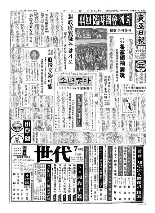 - [社説(사설)] 第(제)44回臨時國會(회임시국회)의 開會(개회)