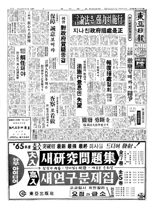 - "言論法(언론법)은 强力(강력)히施行(시행)" 朴大統領特別談話(박대통령특별담화)