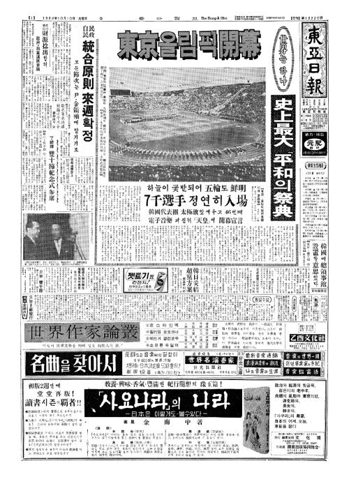 - [社説(사설)] 第十八回(제십팔회) 東京(동경)『올림픽』大會(대회)의 開幕(개막)