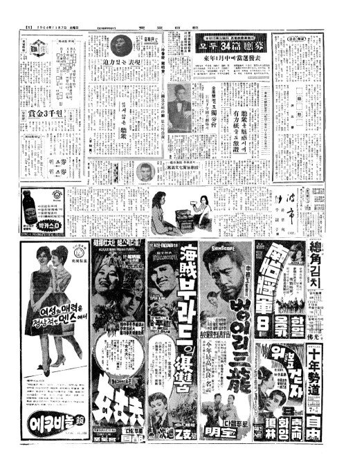 - 本社(본사)15萬(만)원稿料(고요) 長幕戯曲募集(장막호곡모집)에 모두 34篇(편) 應募(응모)