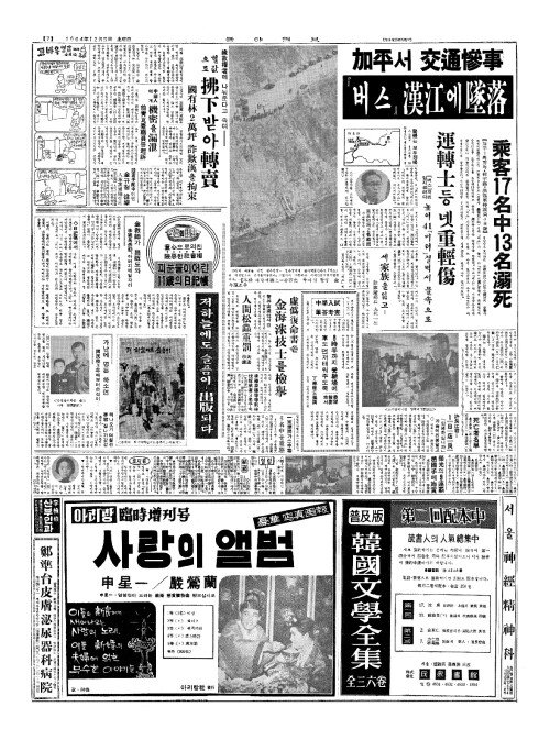 - 加平(가평)서 交通慘事(교통참사)『버스』漢江(한강)에墜落(추락)