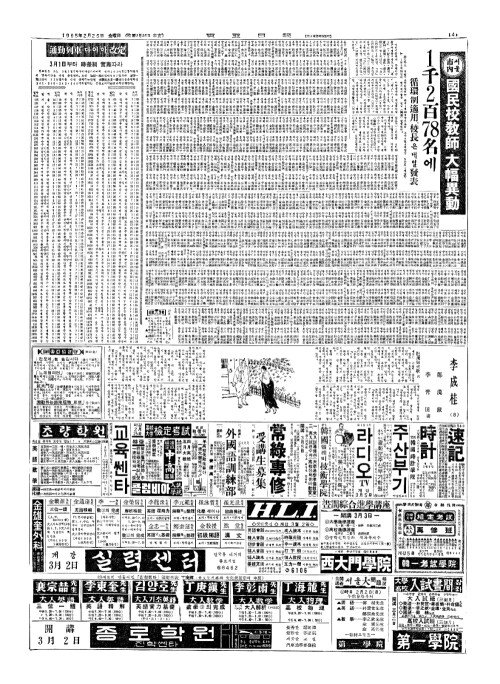- 文敎部(문교부)서是正指示(시정지시) 梨大新入生募集(이대신입생모집)에=7百(백)34名(명)을超過(초과)