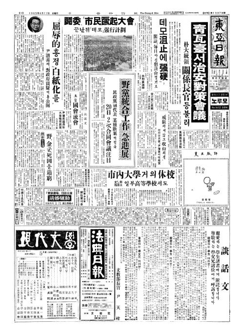 - 政府主催不參(정부주최부삼)키로 서울大(대)、4·19行事(행사)