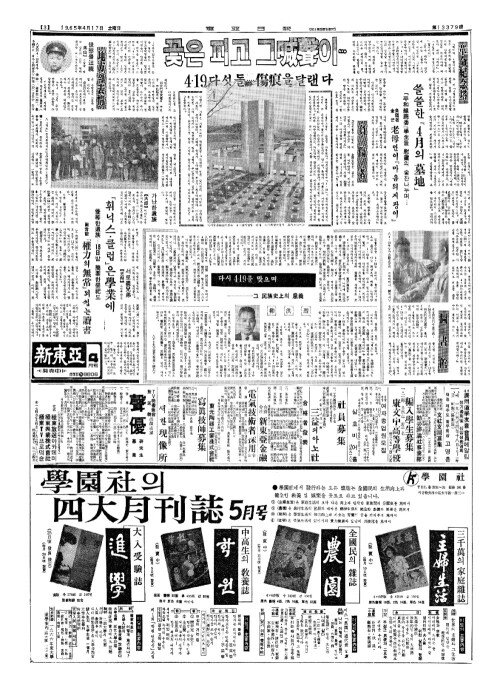 - 4·19革命紀念日(혁명기념일) 授業(수업)않아도 無妨(무방) 文敎部指示(문교부지시)