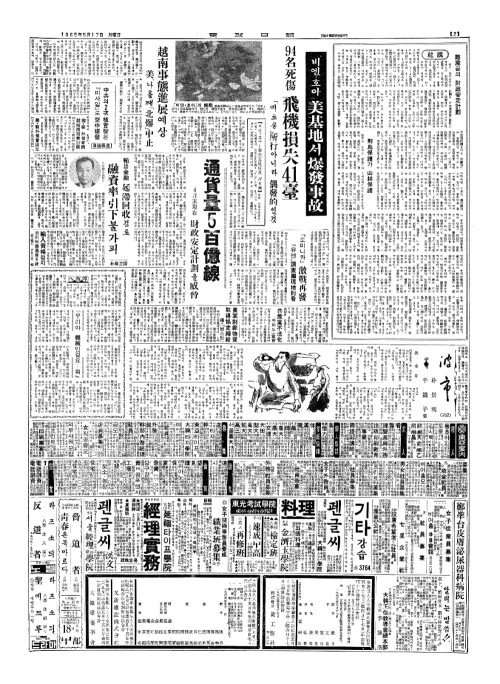 - 『비엔·호아』美基地(미기지)서爆發事故(폭발사고)94名死傷(명사상) 飛機損失(비기손실)41臺(대)