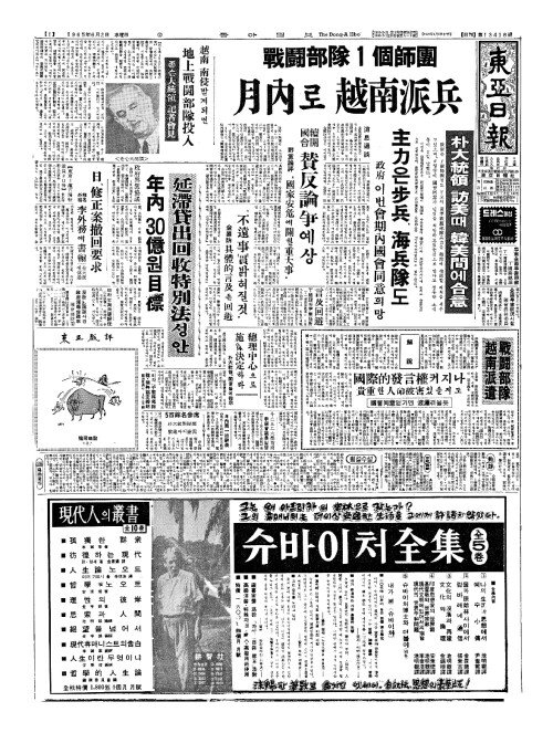 - 戰鬪部隊(전투부대)1個師團(개사단) 月內(월내)로 越南派兵(월남파병)