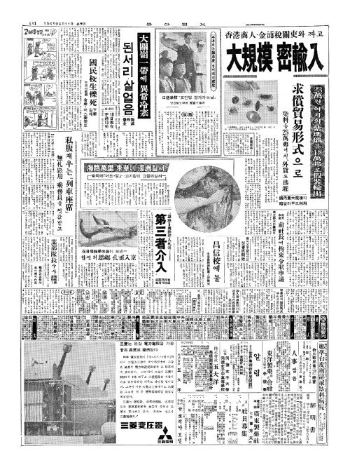 - 香港商人(향항상인)·金浦稅關吏(금포세관이)와 짜고 大規模(대규모) 密輸入(밀수입)