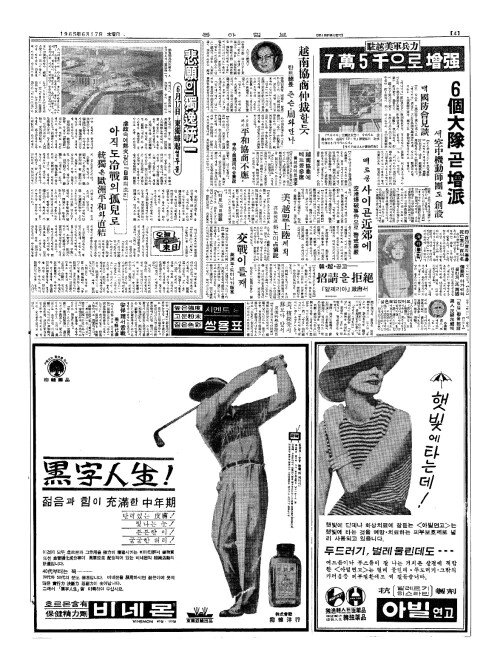 - 駐越美軍兵力(주월미군병력) 7萬(만)5千(천)으로 增强(증강)