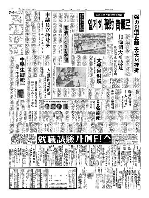 - "大學(대학)을封鎻(봉쇄)"