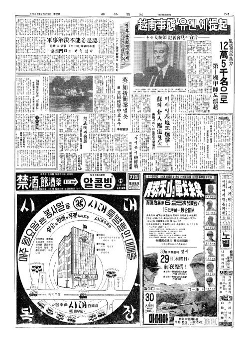 - 越南事態(월남사태)『유엔』에提起(제기) —존슨大統領(대통령),記者會見(기자회견)서宣言(선언)—