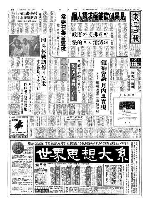 - "戰爭(전쟁)계속할터" 印首相(인수상)、休戰合意說否認(휴전합의설부인)