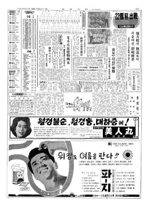 - 서울學徒體育大會(학도체육대회) 東星(동성)(男中(남중))·培材(배재)(男高(남고))優勝(우승)