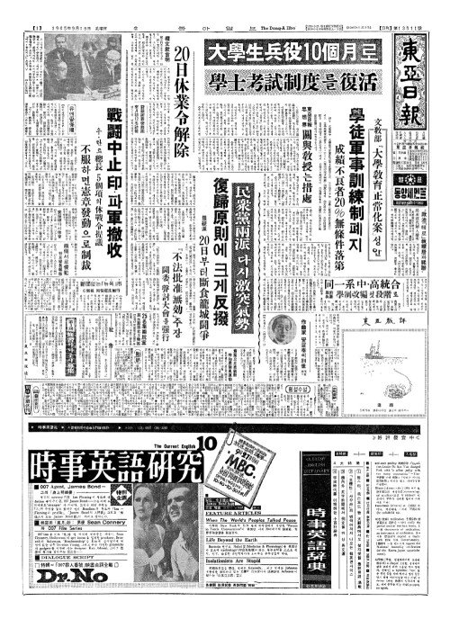 - 文敎部(문교부) 學生(학생)데모根絕(근절)위해 收拾委常設(수습위상설)
