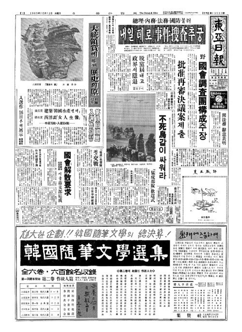 - 滯韓(체한)중인콰 트首相(수상) 義捐金(의연김)1萬弗喜捨(만불희사)