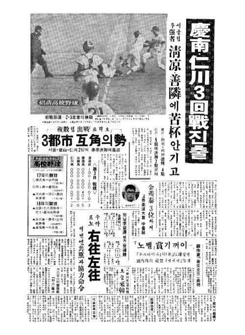 慶南(경남)·仁川(인천)3回戰(회전)진출
