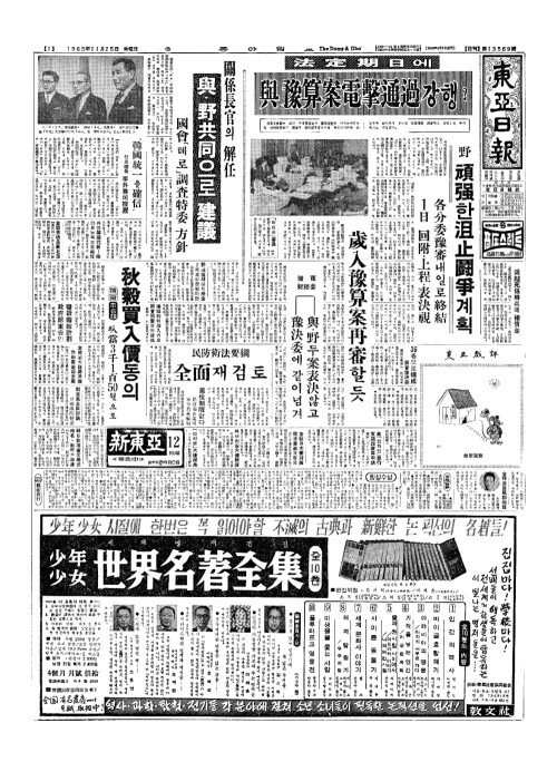 - 徹夜(철야) 財經委(재경위) 與(여)·野(야)두案表決(안표결)않고 豫決委(예결위)에 같이넘겨