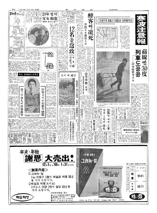 - 『朔風(삭풍)속의훈김』에 各界(각계)서連(련)이은溫情(온정)