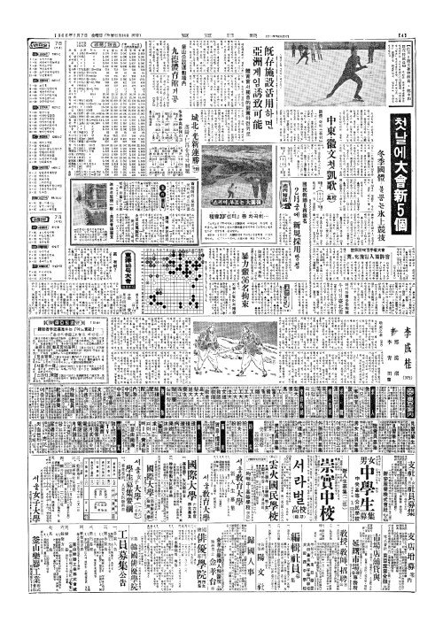 - 冬季國體(동계국체)…첫 날에 大會新(대회신)5個(개)