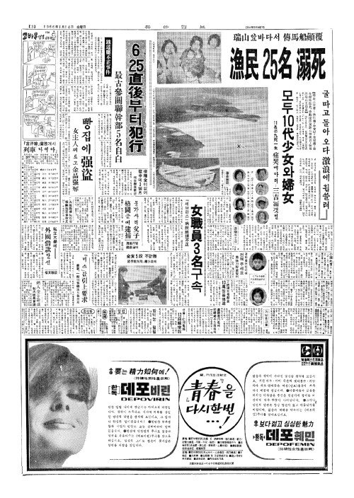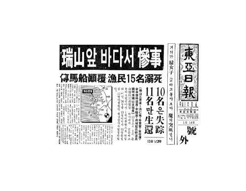 - 瑞山(서산)앞바다서 傳馬船顚覆(전마선전복) 漁民(어민)25名(명) 溺死(닉사)
