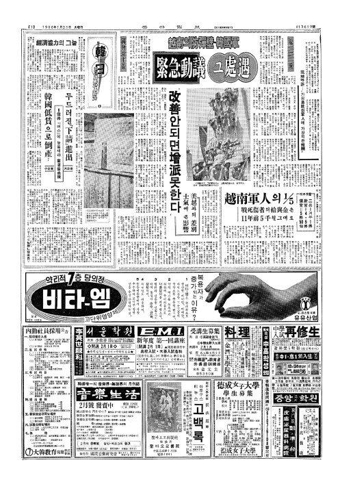 - 比大統領敎書(비대통영교서) 越南(월남)에視察團(시찰단) 派兵問題決定(파병문제결정)