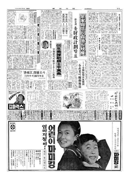 - 66年美援助額(년미원조액)6千萬弗(천만불)