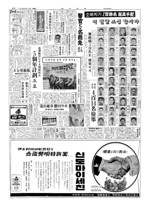 - 소매치기 2百餘名(백여명) 寫眞手配(사진수배) 이 얼굴 조심 합시다 無組織(무조직)3百名(백명)도 檢擧(검거)지시