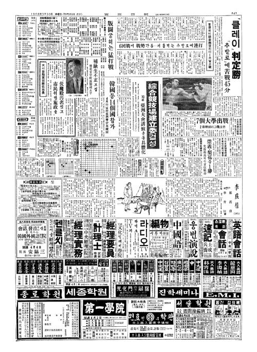 - 版圖(판도)굳히는 猛打戰(맹타전) 新人(신인)아마拳鬪(권투)3日(일)