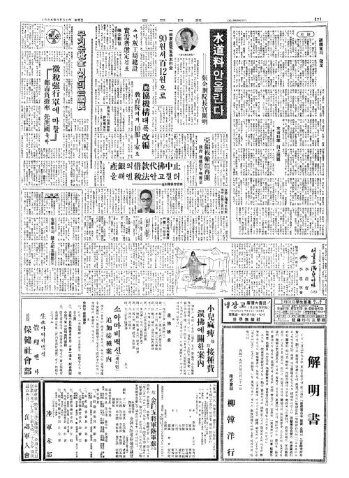 - 水道料(수도료) 안올린다=張企劃院長官闡明(장기획원장관천명)