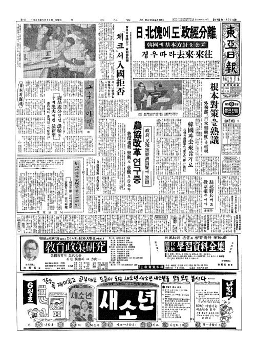 - 日(일)、北傀(북괴)에도『政經分離(정경분리)』 韓國(한국)에基本方針(기본방침)을통고