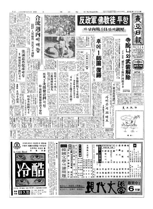 - 越南(월남) 解決策(해결책)가진 日人(일인) NYT紙(지)에 兩面(량면) 廣告(광고)