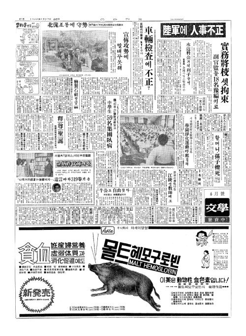 - 膓(장)『티푸스』豫防注射(예방주사)맞고 中學生(중학생) 59名集團臥病(명집단와병)