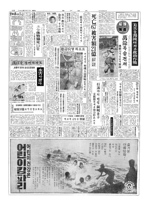 - 死亡(사망)67·被害額(피해액)21億(억) 15日(일)—26日(일) 全國(전국)의水害(수해)