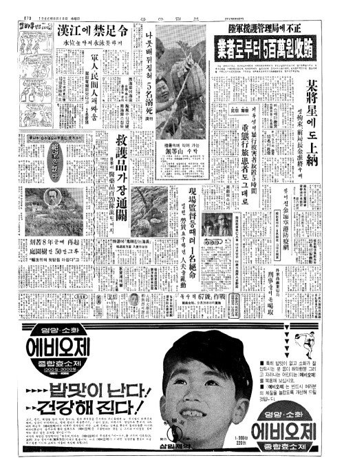 - 나룻배뒤집혀 5名溺死(명닉사) 濟州(제주)