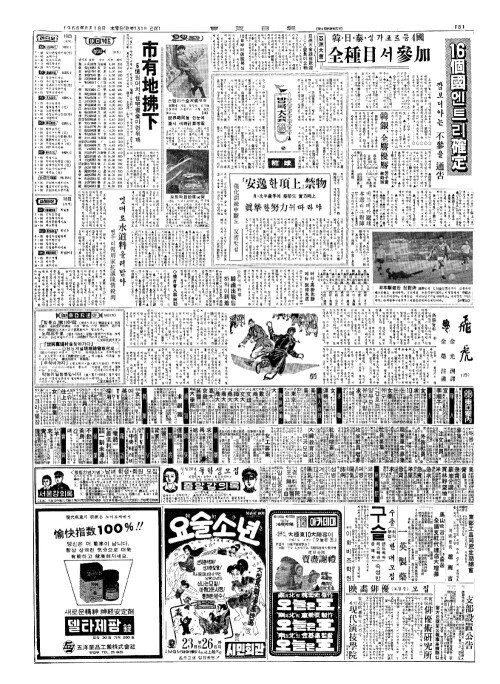 - 亞洲大會(아주대회) 韓(한)·日(일)·泰(태)·싱가포르등 4國(국) 全種目(전종목) 서 參加(삼가)