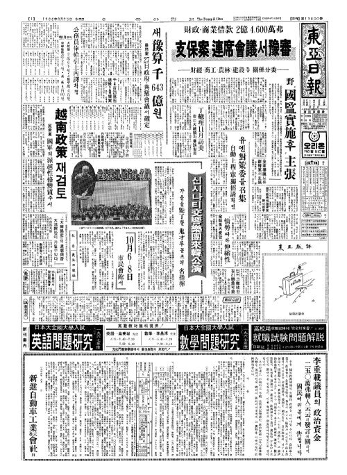 - 全面審議(전면심의)보류 新韓黨(신한당)서主張(주장)