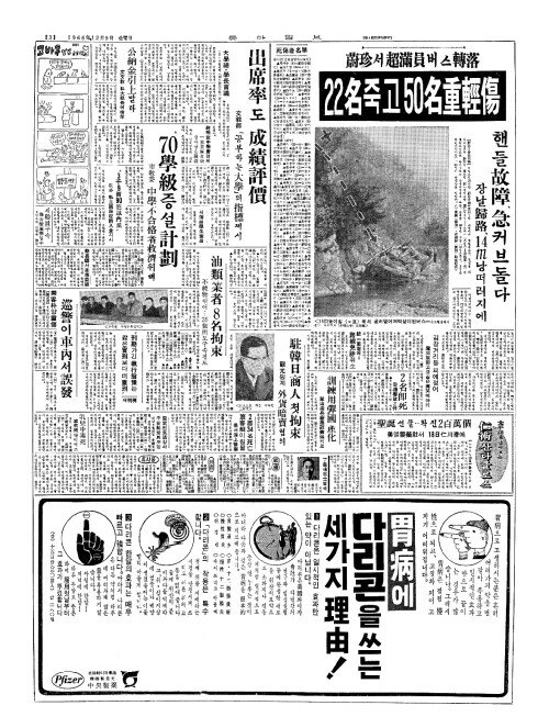 - 蔚珍(울진)서超滿員(초만원)버스轉落(전낙) 22名(명)죽고50名重輕傷(명중경상)