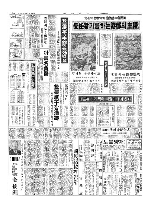 - 궂은비 春雷(춘뢰)속에 遊說場(유설장)은超滿員(초만원) 受任者(수임자)가름하는港都(항도)의『主權(주권)』