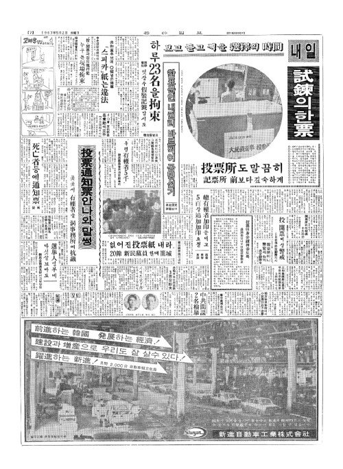 - "없어진投票紙(투표지) 내라"20餘(여) 新民黨員(신민당원) 한때 籠城(농성)