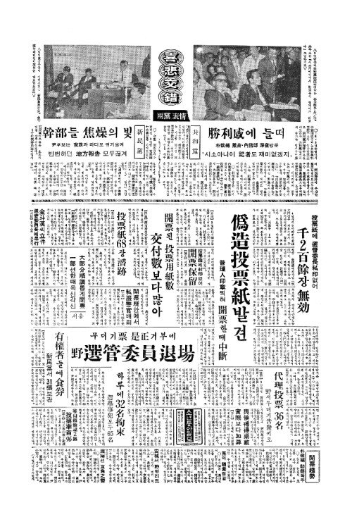 - 開票所(개표소)에 私服警官(사복경관) 參觀人(삼관인)과승강이 한때開票中斷(개표중단)도