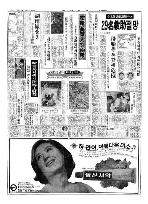 - 두北洋漁船遭難(북양어선조난)사고 29名救助(명구조)절망 아다크로避航(피항)