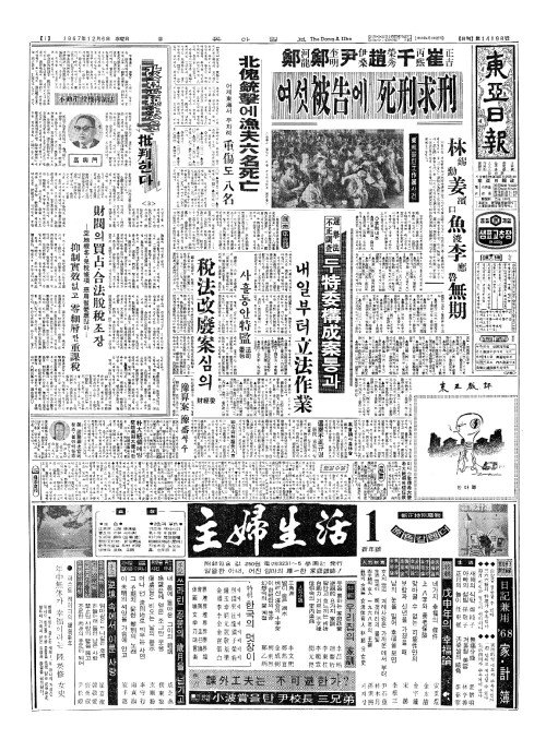 - 鄭河龍(정하룡) 鄭奎明(정규명) 尹伊桑(윤이상) 趙榮秀(조영수) 千丙熙(천병희) 崔正吉(최정길) 여섯被告(피고)에 死刑求刑(사형구형)