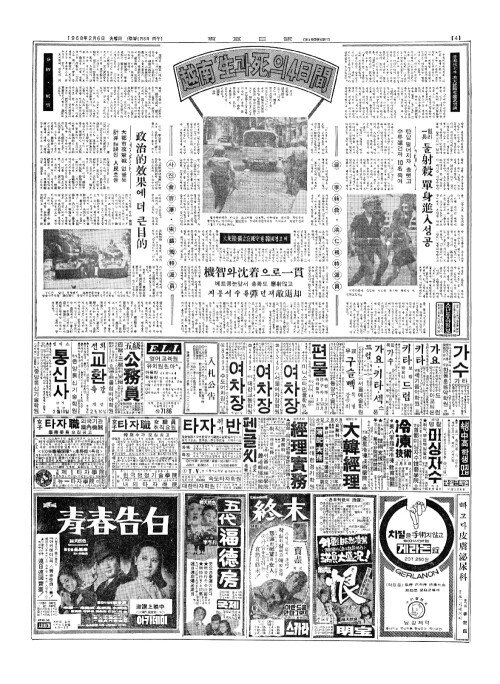 - 派越技術者(파월기술자) 다섯名(명) 死傷(사상)