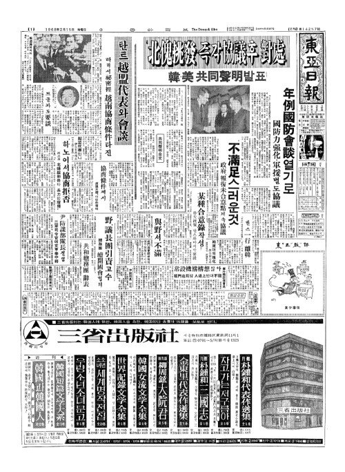 - "하노이서協商拒否(협상거부) 러스크 北爆緩和(배폭완화)틈타 兵力(병역)만增强(증강)"