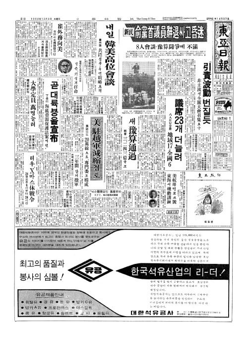 - 新民(신민) 俞黨首議員辭退(수당수의원사퇴)싸고昏迷(혼미)